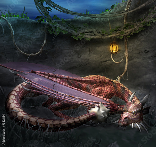 © EllerslieArt, Fototapeta premium Smok śpi w jaskini