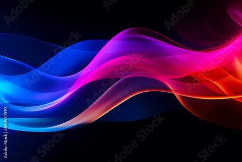 © vika33, Fototapeta premium Smoke abstract Colorful blue purple pink gold wave on black background curves backdrop