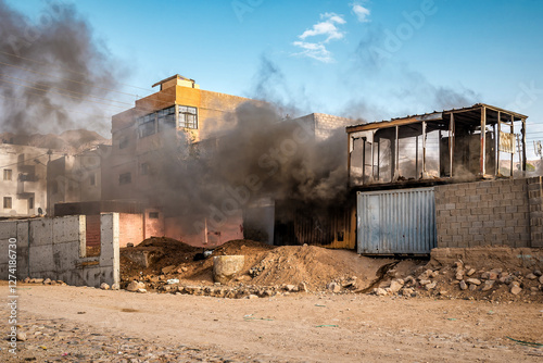 © Volodymyr Shevchuk, Obraz premium Smoke after explosion after aerial bombardment