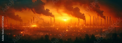 © tongpatong, Fototapeta premium Smoke and lights in an abstract industrial scene
