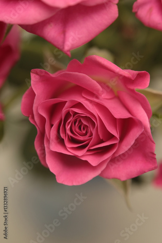 © Liliia, Fototapeta premium Smoke Close-up Selective soft focus cream color Rose flower bud. Nature blur green, pink beige natural abstract background.