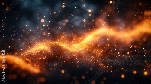 © Ksenia, Naklejka premium Smoke cloud from burnt wood fire. Dust of lights. Spooky dark magic haze. Panoramic view of the abstract fog.
