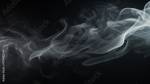 Fototapeta premium Smoke clouds, steam mist fog and white foggy vapor. Realistic smoke particles isolated on black background. Beautiful swirling gray smoke.