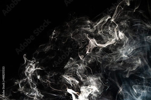 © Jozsef, Obraz premium Smoke effect texture. Isolated background. Black and dark backdrop. Smokey fire and mistic effect.
