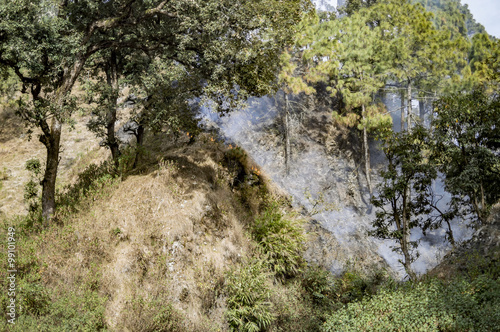 © ProMicroStockRAW, Fototapeta premium Smoke filled forest in hills