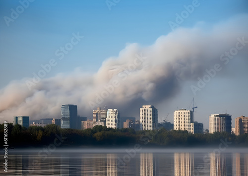 Fototapeta premium Smoke from a fire in City. generative ai
