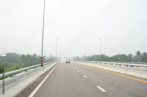 Fototapeta premium Smoke from forest fires in Indonesia blows across Phatthalung Thailand