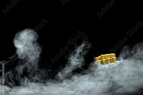© sirawut, Fototapeta premium smoke people-shaped with gold coins stacks