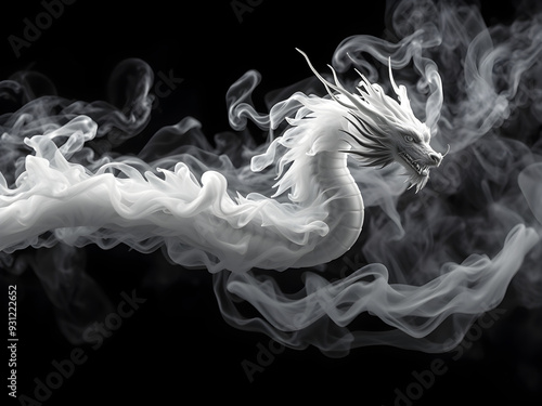 © pla2u, Fototapeta premium Smoke rises in the shape of a dragon.