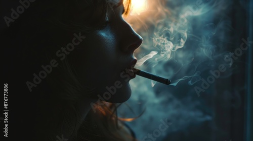 © The 2R Artificiality, Obraz premium Smoking cigarette against dark backdrop