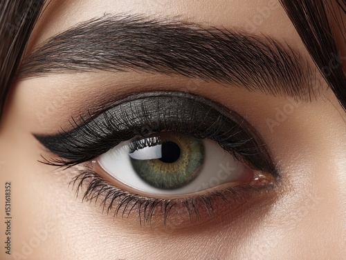 © Paul, Obraz premium Smoky eye makeup tutorial inspiration; various shades expertly applied - shadow palette intense elegant inspiration tutorial
