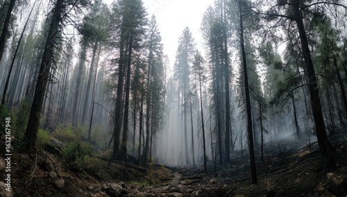 © Suzu, Obraz premium Smoky forest floor after fire