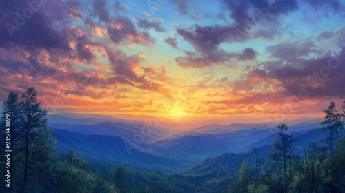 © MUdaylah, Obraz premium Smoky mountain sunset with generative ai