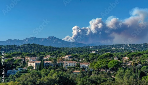 © Sitti, Fototapeta premium Smoky wildfire over Mediterranean town