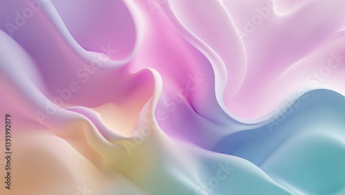 Obraz premium Smooth Abstract Gradient Curves Flowing Background In Pastel Pink Blue Yellow...