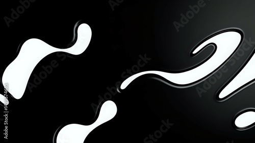 © zamart, Naklejka premium Smooth abstract white fluid shapes on black background forming high contrast minimalist composition with curved visual elements. Modern graphic concept