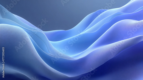 © jie, Obraz premium Smooth and Flowing Blue and White Abstract Waves