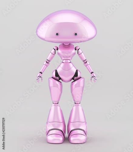 Fototapeta premium Smooth and lovely character - mushroom lady robot in pink, 3d illustration /...