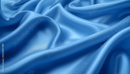 Fototapeta premium "Smooth and Shiny Blue Silk Satin Fabric with Flowing Waves, High-Resolution...