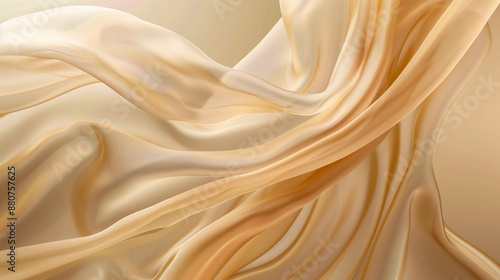 Fototapeta premium Smooth beige fabric, delicate waves, elegant drapery, minimalistic luxury