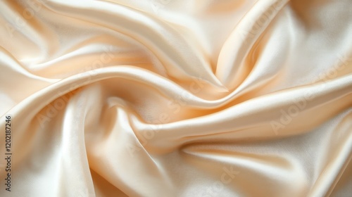 © AImmersive Imagery, Obraz premium Smooth beige satin fabric textile with soft folds and texture for background Copy Space