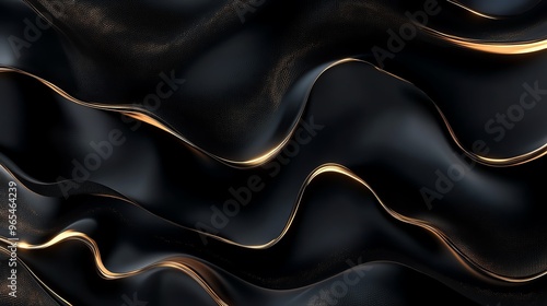Obraz premium Smooth black backdrop with gentle golden waves, fluid lines forming a...