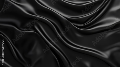 © Pichapob, Obraz premium Smooth Black Satin Fabric with Elegant Drapes and Textures