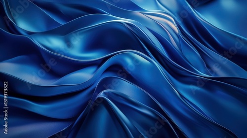 © PENJAN PANTANA, Fototapeta premium Smooth Blue Fabric Texture with Elegant Waves and Creases