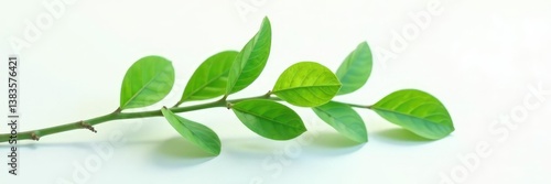 © Prapasarabhron, Fototapeta premium Smooth branch on white surface with soft rounded ends, leafy, nature