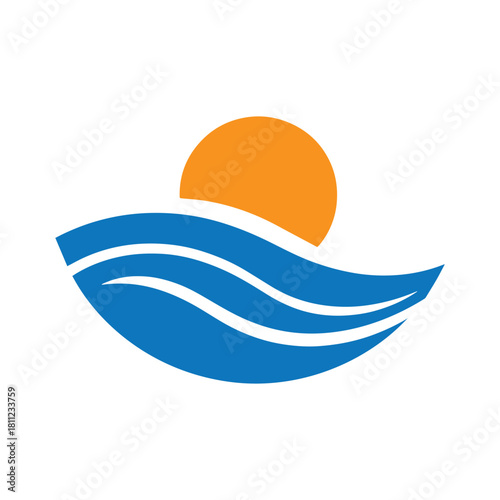 © Achmad99, Fototapeta premium Smooth Continuous Wave Beneath A Perfect Round Sun Minimalist Logo