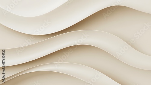 © Zargham, Obraz premium Smooth cream abstract wave layers creating elegant minimal background design