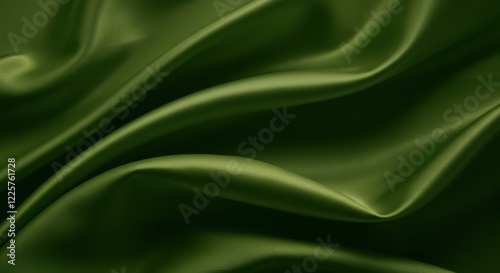 © artem, Obraz premium Smooth dark green fabric with elegant flowing folds and soft texture