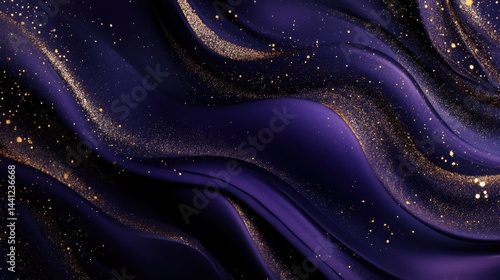 Obraz premium Smooth dark purple backdrop with a delicate overlay of scattered gold...