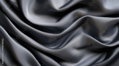 © ALIS ST, Obraz premium Smooth Dark Satin Fabric with Elegant Drapes and Soft Textures