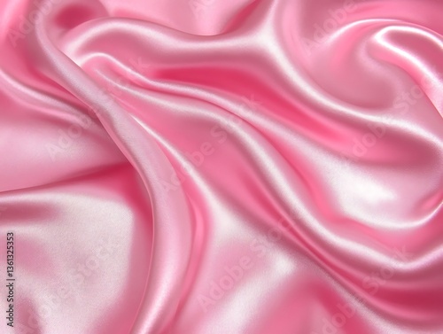 © Ridho, Obraz premium Smooth draped pink satin fabric with soft folds and shimmering texture