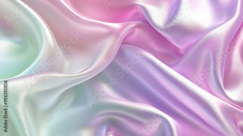 Obraz premium Smooth elegant iridescent silk fabric forming an abstract background with copy space. The material is flowing and forming soft folds