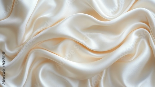 © Ruqqq, Obraz premium Smooth, elegant ivory satin fabric with flowing, rippling folds and soft, delicate texture.