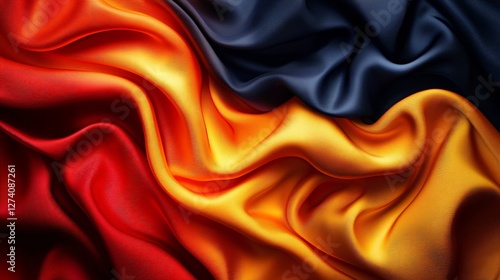© Montri, Obraz premium Smooth Fabric Waves in Black, Red, and Yellow Colors Creating Vibrant Textured Background