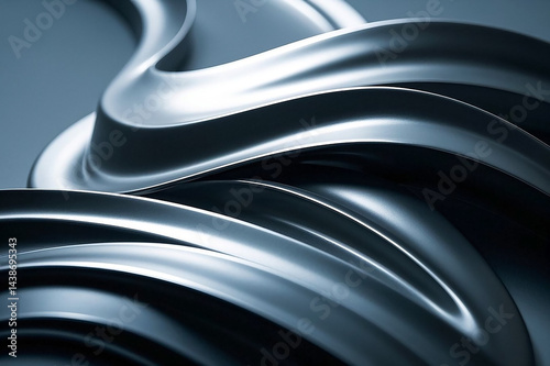 Obraz premium Smooth, flowing curves of a metallic material catching highlights and reflections, creating a sleek, modern aesthetic. Ideal for product design, abstract art, and futuristic visuals.