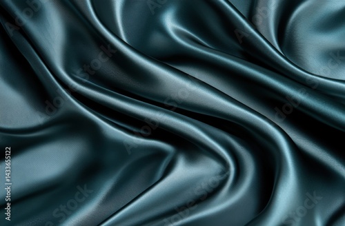 © HrdiGn Std, Fototapeta premium Smooth, flowing teal fabric with soft, gentle curves