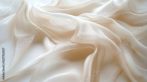 Fototapeta premium Smooth Flowing White Silk Fabric with Soft Natural Folds on a Minimalistic Background