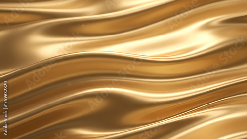 Fototapeta premium Smooth gold silk fabric texture flowing wave background