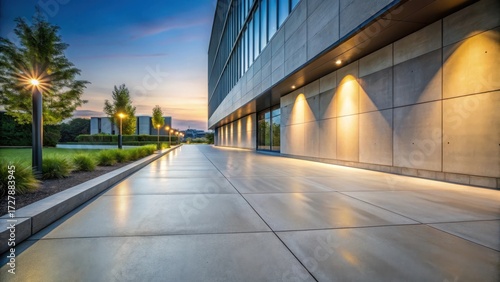 Fototapeta premium Smooth grey concrete sidewalk at dusk, modern, architecture, modern, architecture, exterior, urban landscape, urban