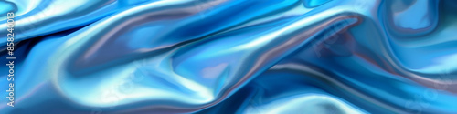Fototapeta premium Smooth Iridescent Blue Silk Fabric Background with Soft Waves and Reflective...
