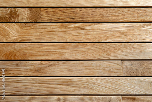 Fototapeta premium Smooth light oak wall with horizontal grooves, showcasing natural wood texture and grain patterns, perfect for interior design and decoration