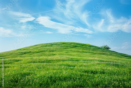 Obraz premium Smooth meadow on the hill with blue sky, beautiful landscape