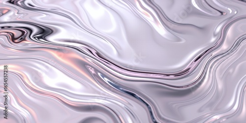 Fototapeta premium Smooth metallic liquid surface with fluid wave patterns and subtle pink and purple highlights
