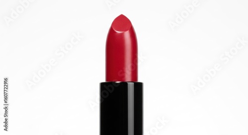 Obraz premium Smooth, red lipstick with a black tube stands against a white background