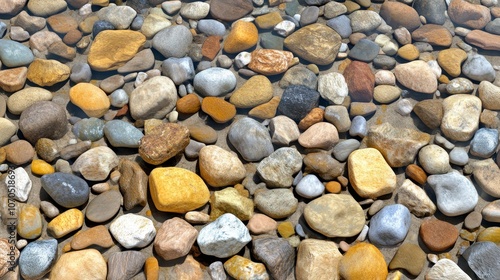 © Ai DreamscapesTH, Naklejka premium Smooth River Stones Water Natural Texture Pebble Background