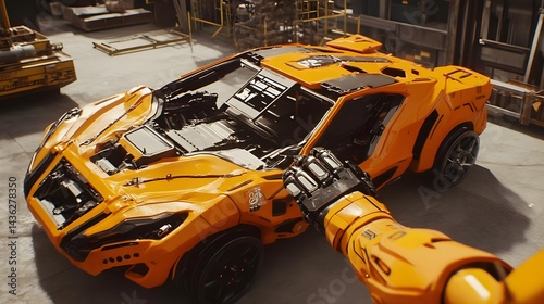 © RAT-GSJ, Fototapeta premium Smooth Robot Movement Toward Vehicle in Industrial Setting